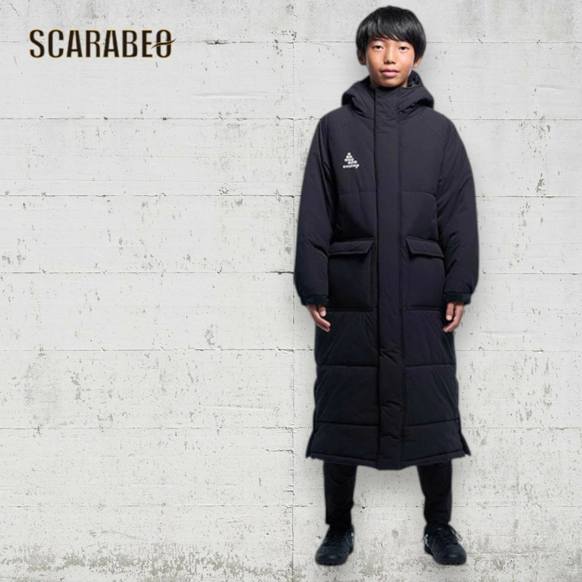 寒い季節に最適な発熱中綿素材を使用した、ジュニア向けベンチコート。