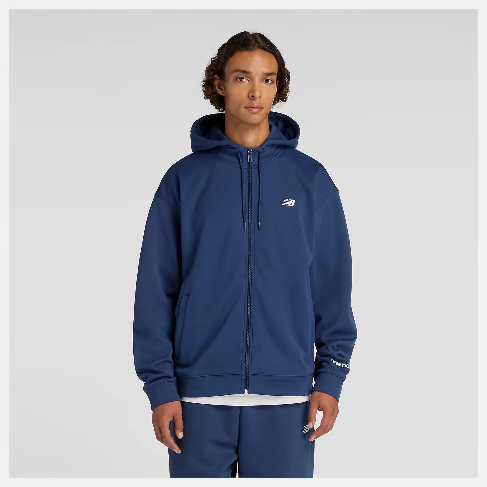 ニューバランス New Balance Double Knit Hoodie Jacket メンズ ダブルニット フーディ ジャケット スウェット パーカー 保温 リサイクルポリエステル NB NAVY AMJ53174-nny