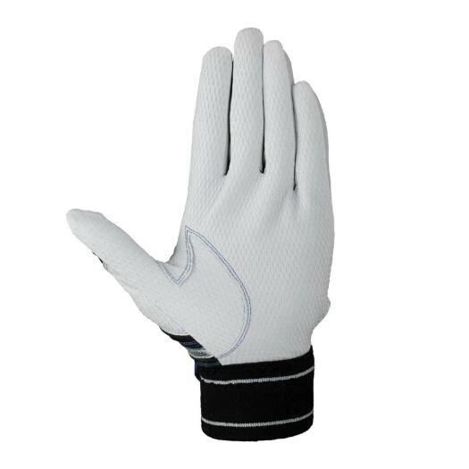 掌部には独自ウォッシャブル加工を施した「ダイヤエンボスシープレザー」を採用し、汗によるグリップ力低下を軽減。さらにロジンテック加工でドライ・ウェットを問わず安定したグリップ力を発揮。デュアルテンションベルトとワイドロングベルトで手首をしっかりサポートし、独自の指先立体縫製が密着感を高めます。