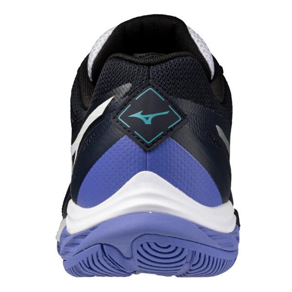 ミズノ独自のウェーブテクノロジーにより、衝撃吸収と反発力を両立。さらに、通気性の良いアッパー素材で長時間のプレーでも快適さを維持します。デザインはネイビー×ホワイトの落ち着いた配色で、コート上でもスタイリッシュに。