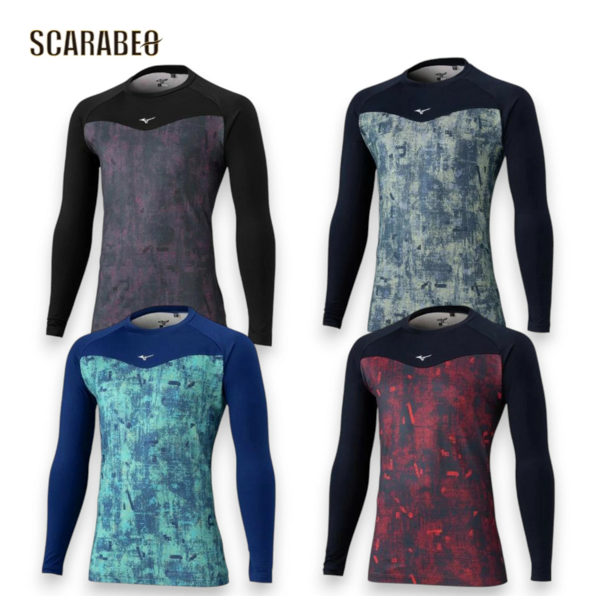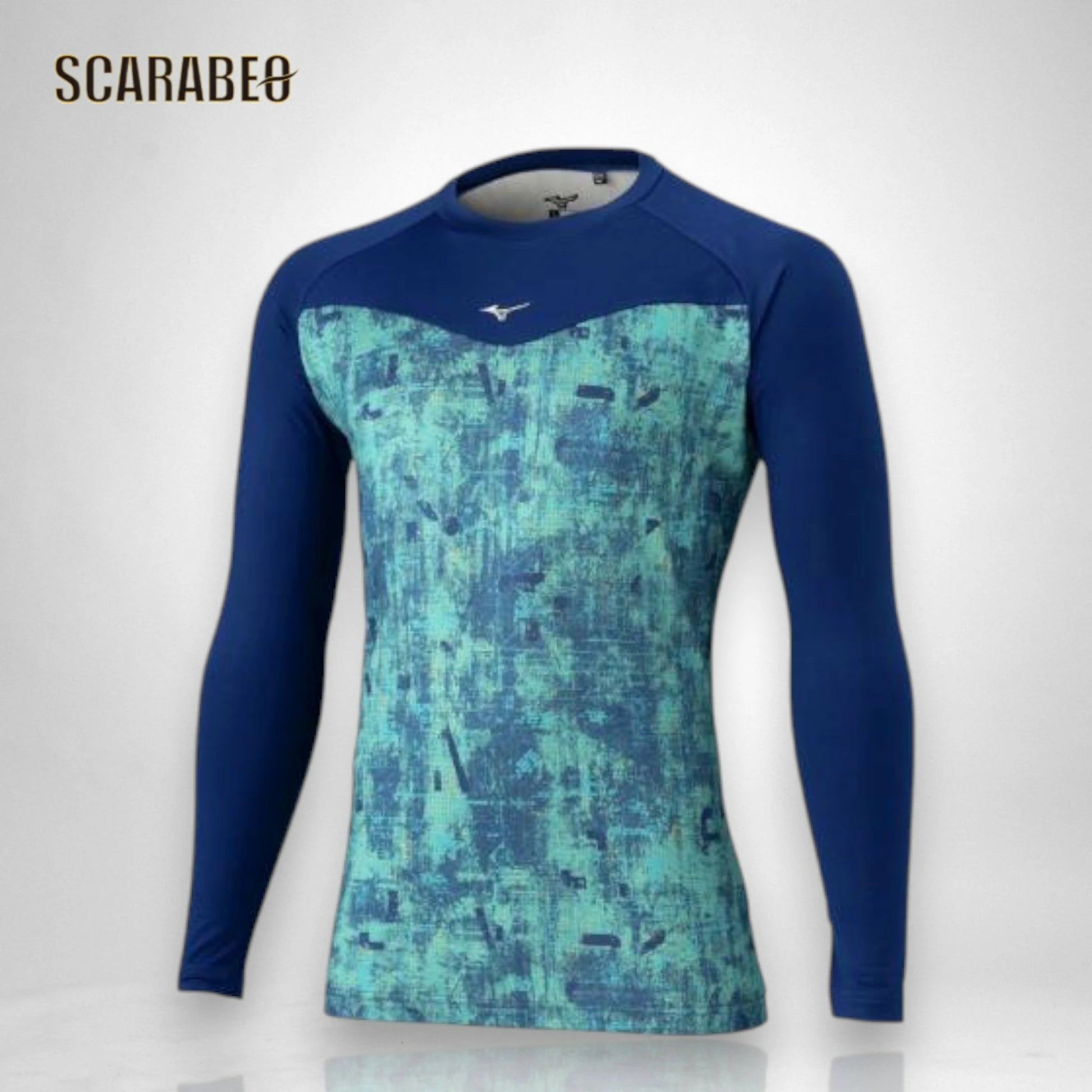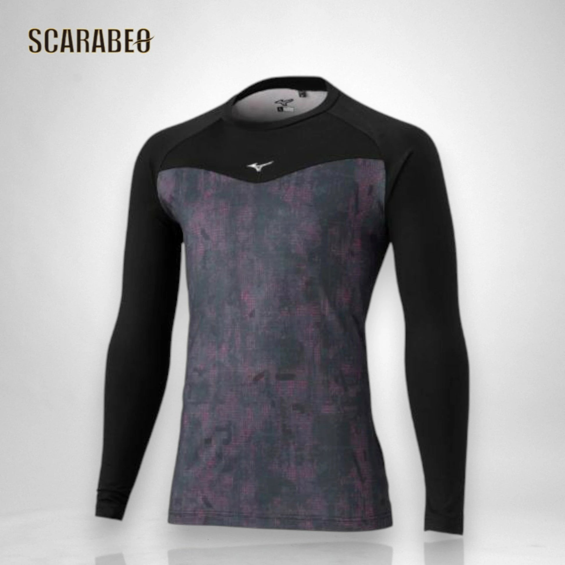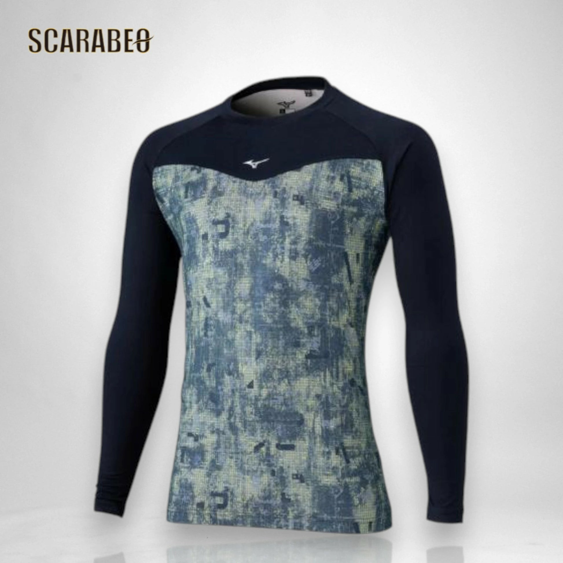 ミズノのユニセックス用裏起毛グラフィックアンダーシャツ(ローネック/長袖)。