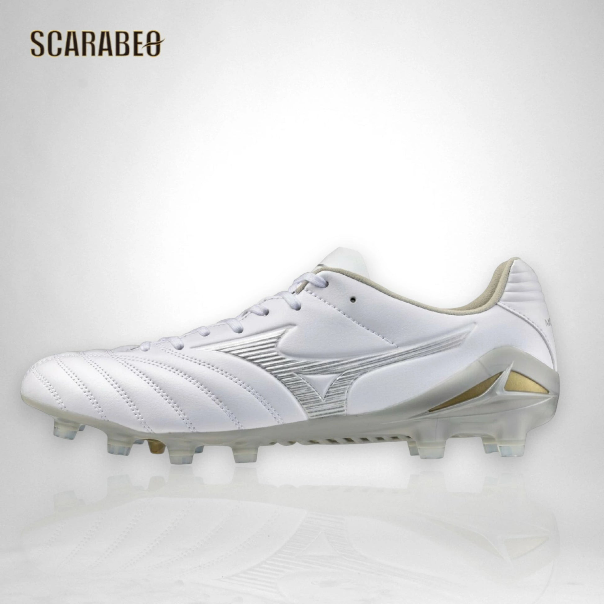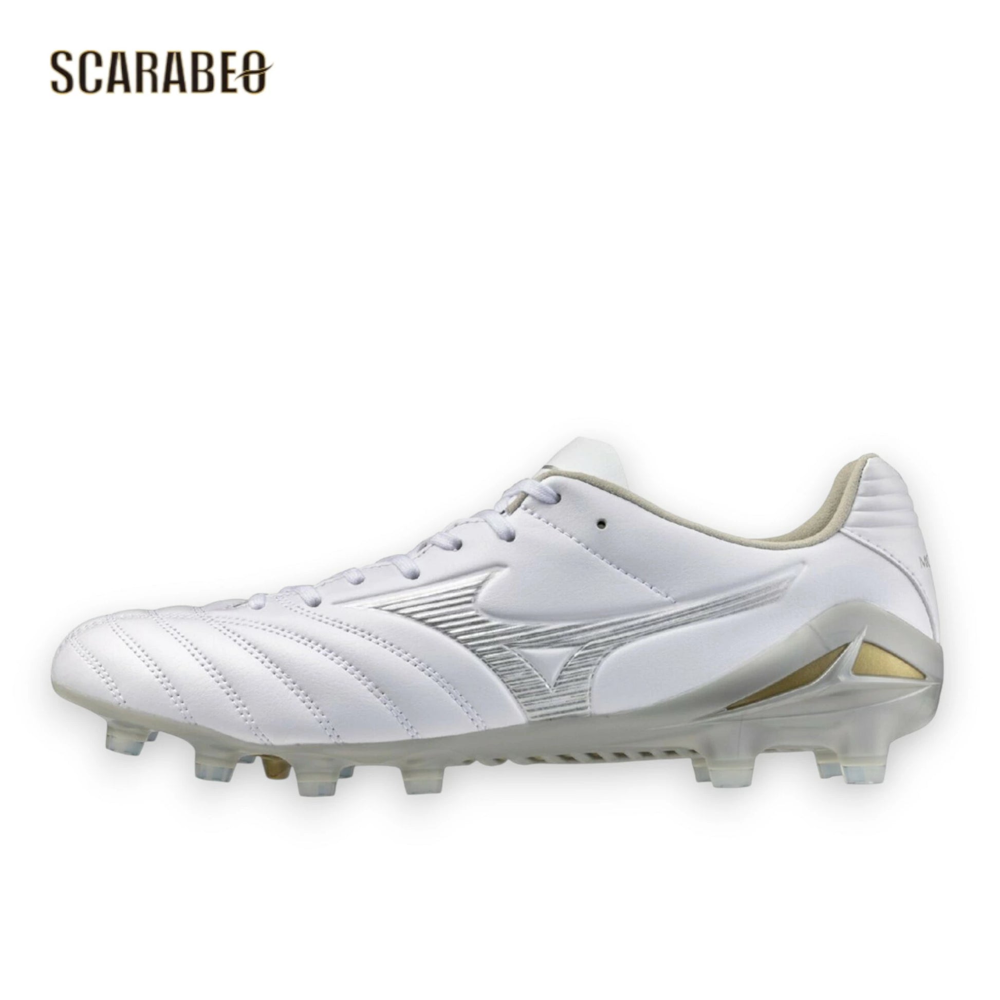 【予約販売】ミズノ MIZUNO モナルシーダNEO III PRO サッカースパイク ユニセックス マイクロファイバー 軽量 柔軟 素足感覚 ゼログライドライトインソール 固定式 ホワイト×シルバー 学生向け p1ga262204