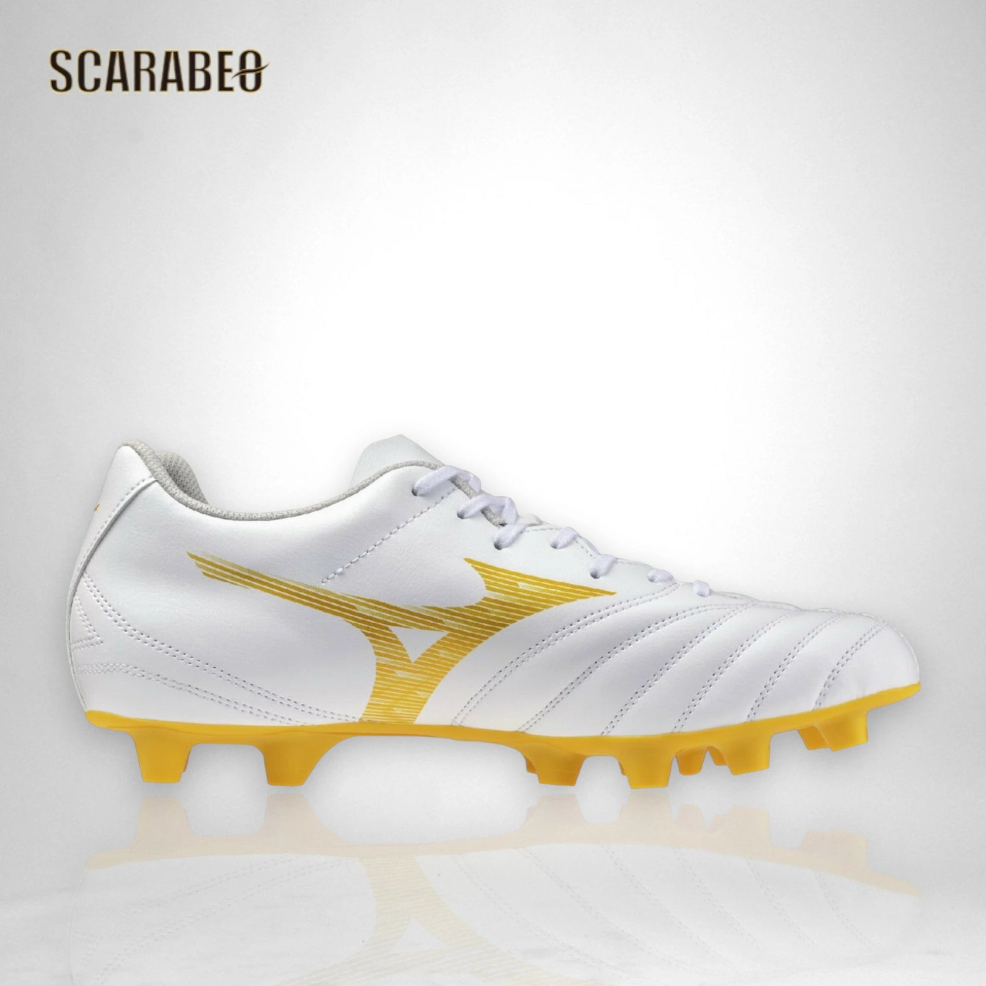 ミズノ MIZUNO モナルシーダNEO III SELECT サッカースパイク ユニセックス 3E ワイドフィット ゼログライドライトインソール 軽量 柔軟 エントリーモデル 固定式 天然芝 土 人工芝対応 ホワイト×ゴールド p1ga262550