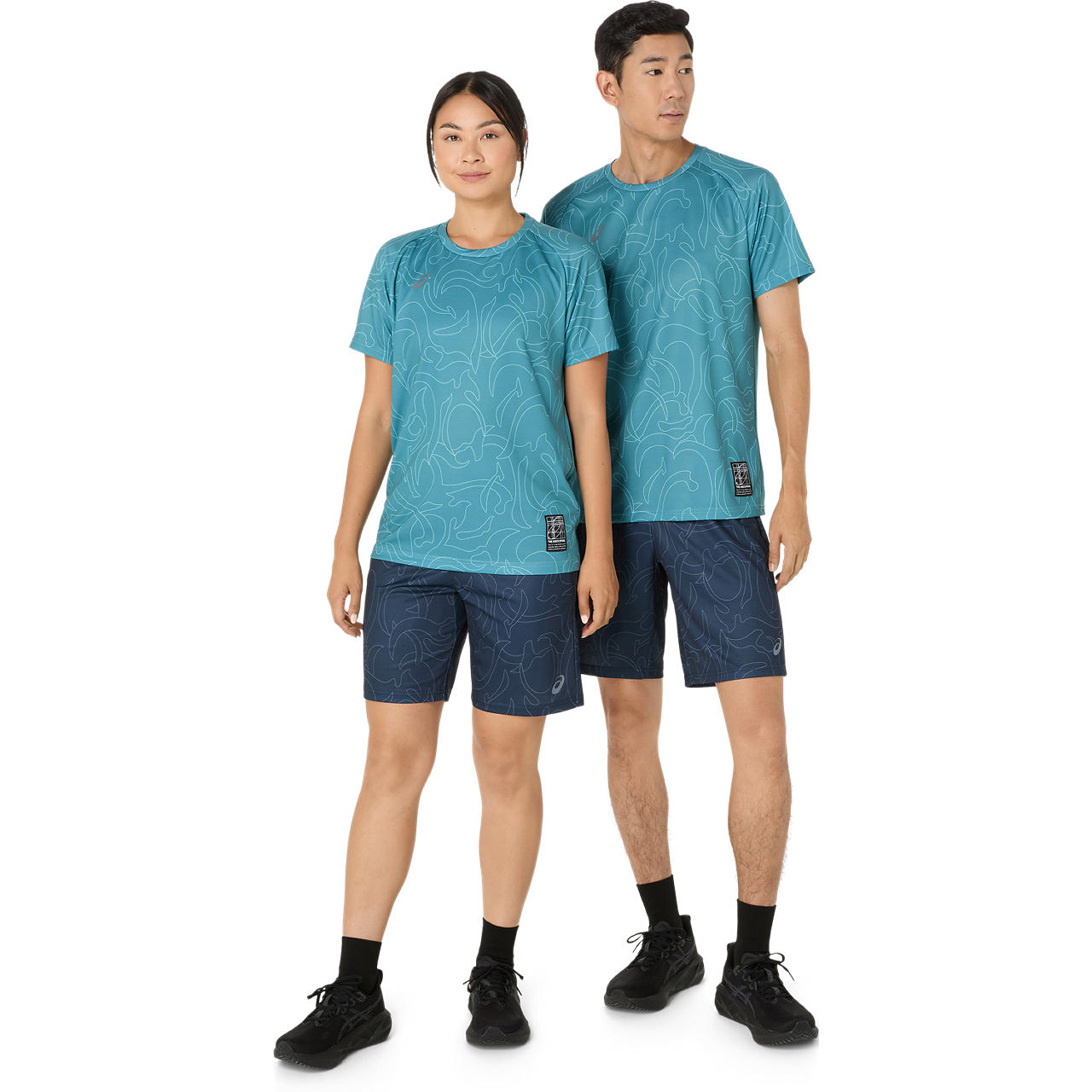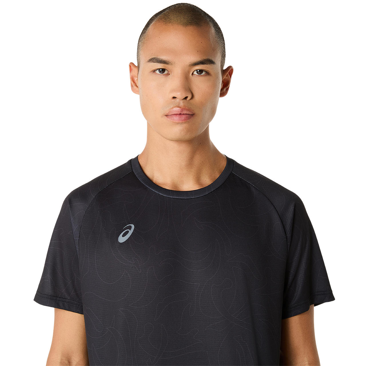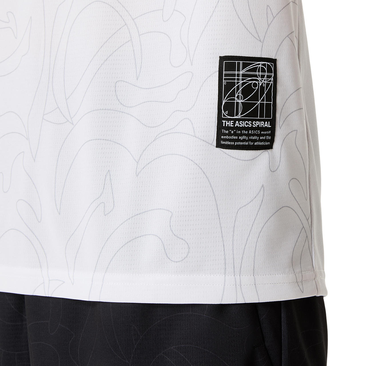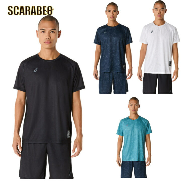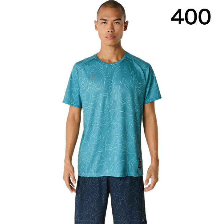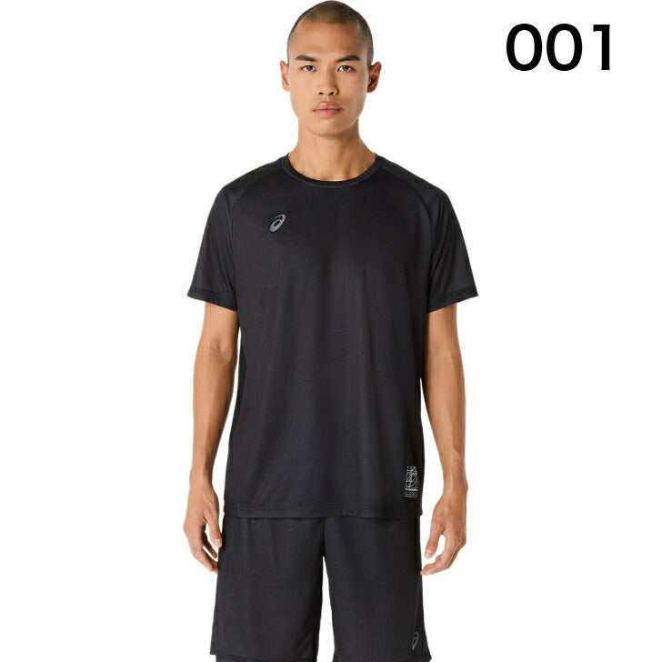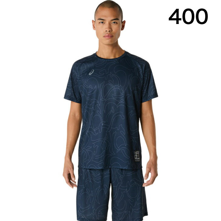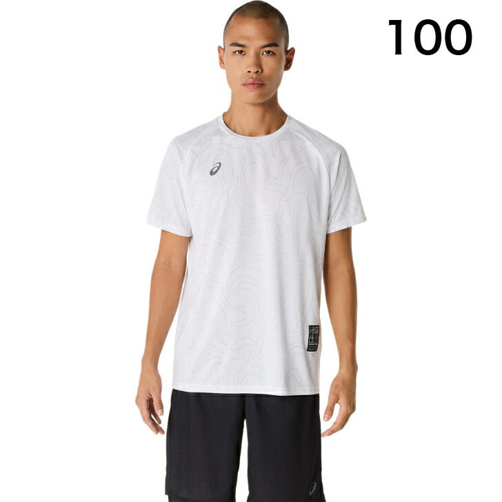 ・コンセプトであるジャポニズムの昇華グラフィックをフロントと両袖に採用・ひとつのデザインパターンから複数の型取りによって作成された世界で唯一のアイテム・吸汗速乾性を追求したポリエステルニット素材を採用・アシックススパイラルウーブンラベルをデザインのアクセントに・主素材の50%以上にリサイクル素材を使用
