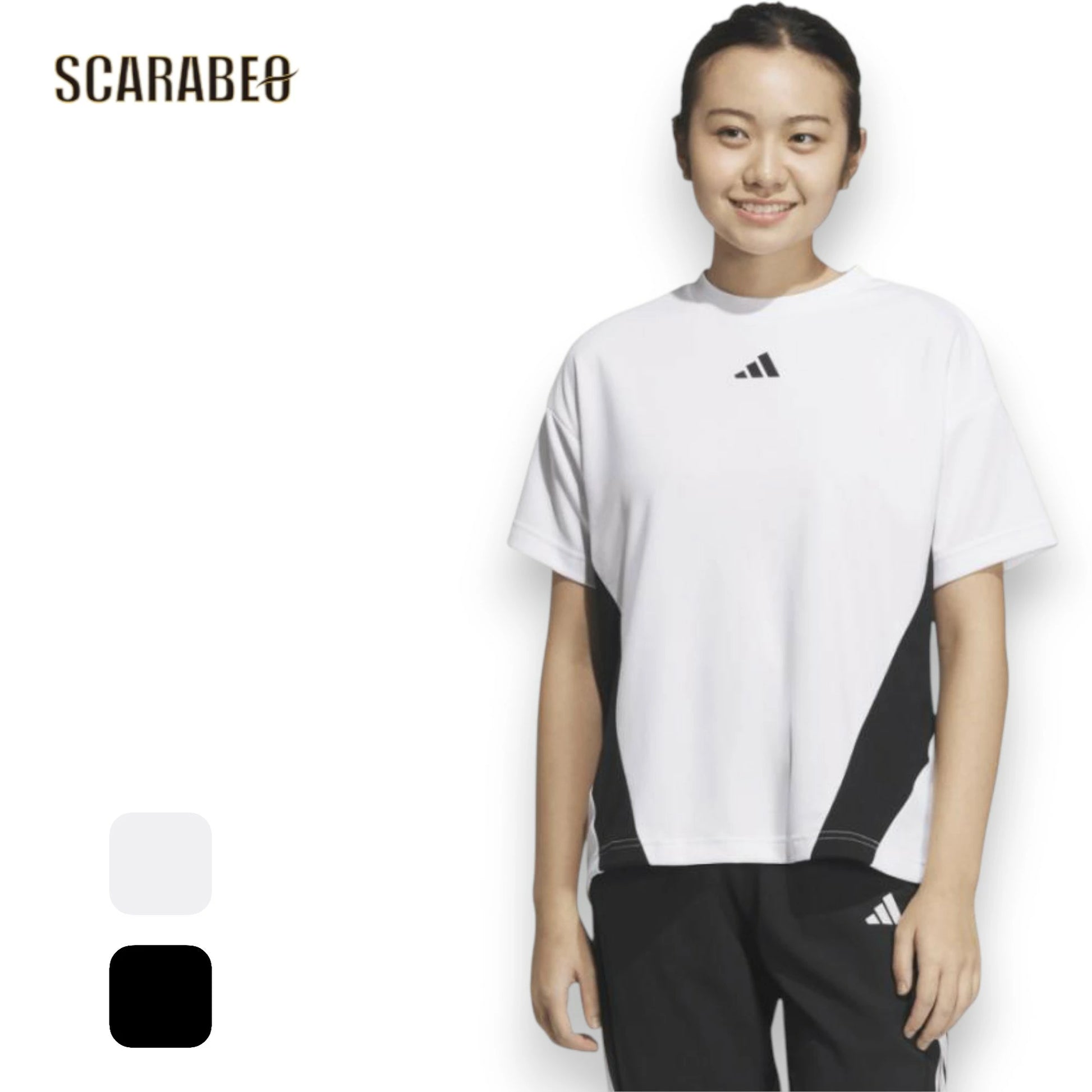 adidas アディダス レディース 半袖 Tシャツ KQD82 カラーブロック AEROREADY 吸汗速乾 コットン混 スポーツウェア トップス ルーズフィット kqd82