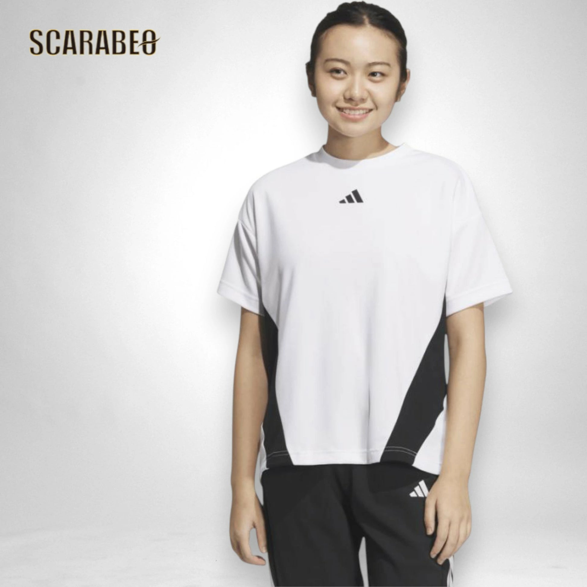 アディダスのレディース用カラーブロック半袖Tシャツ(KQD82)は、ポップな色使いと両サイドのストライプが印象的な一枚。どんなシーンでも存在感を発揮するデザインで、カジュアルコーデやスポーツシーンに活躍します。