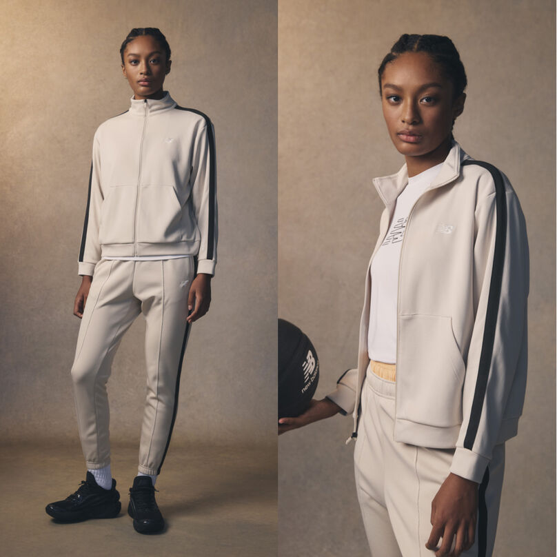 左腿のNBロゴ刺繍がワンポイント。