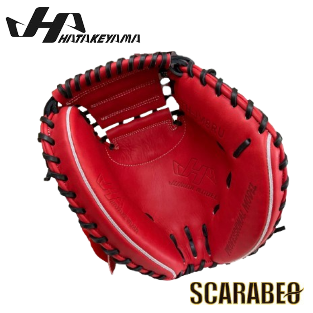TH-JM8RU ハタケヤマ HATAKEYAMA 軟式ジュニア用 キャッチャーミット 北米ステアハイド レッド Uバック ピンキーパターン JL8型 少年野球 捕手用 台湾製